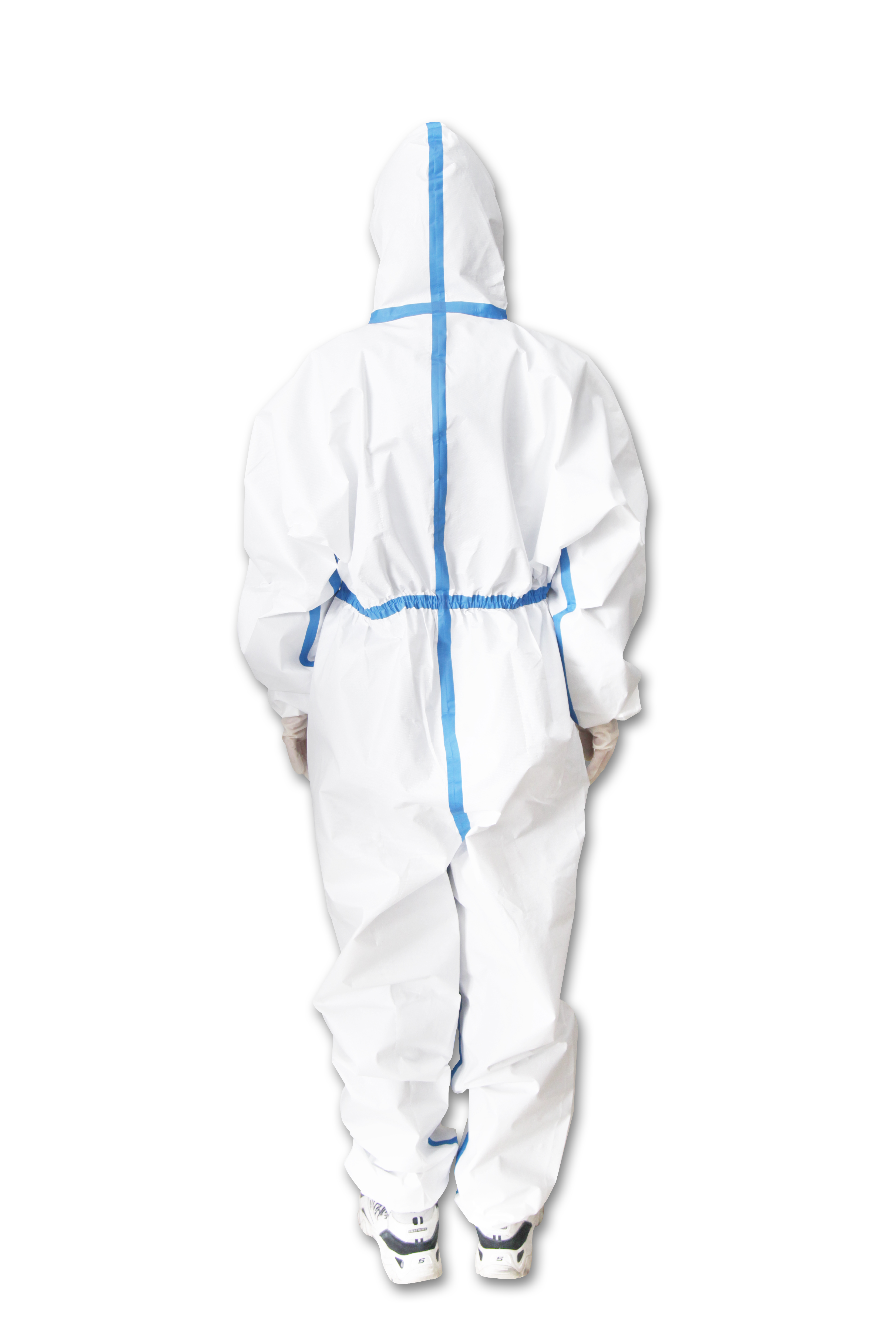 醫(yī)用一次性防護(hù)服由連帽上衣、褲子組成、為連身式結(jié)構(gòu)。無菌和非無菌兩種包裝,產(chǎn)品符合GB19082-2009《醫(yī)用一次性防護(hù)服要求》。