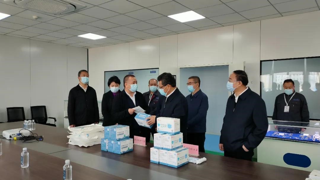 2021年10月22日,甘肅省政府省長任振鶴、副省長李沛興、程曉波、省政府秘書長李志勛、蘭州市市長張偉文、省發(fā)改委黨組書記、主任康軍、省衛(wèi)健委主任郭玉芬等一行省市領(lǐng)導(dǎo)蒞臨西脈新材料產(chǎn)業(yè)園調(diào)研防疫物資儲(chǔ)備及產(chǎn)能情況,蘭州高新區(qū)管委會(huì)孫裕主任陪同。