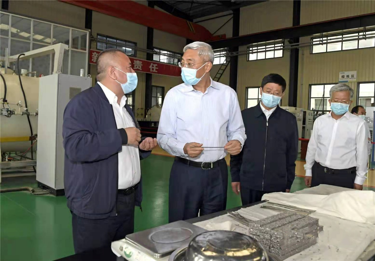 Secretary Yin Hong and his delegation visited the company's raw material processing base; Ti Ni memory alloy smelting workshop has a detailed understanding of the R&D and production environment of shape memory alloy internal fixation implant devices, artificial mechanical heart valves, new functional coating guide wires, superlubricity hydrophilic coating catheter and other products< br />