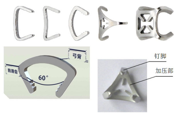 西脈記憶合金釘腳固定器——充分利用記憶合金神奇的形狀記憶特性以及巧妙的結(jié)構(gòu)設(shè)計、獨有的核心技術(shù)制造。該產(chǎn)品由弓背加壓部、釘腳組成,造型簡單,易于變形置入,復(fù)位后持續(xù)加壓,固定可靠,產(chǎn)品型號規(guī)格眾多,可供醫(yī)生在臨床使用中輕松選用。